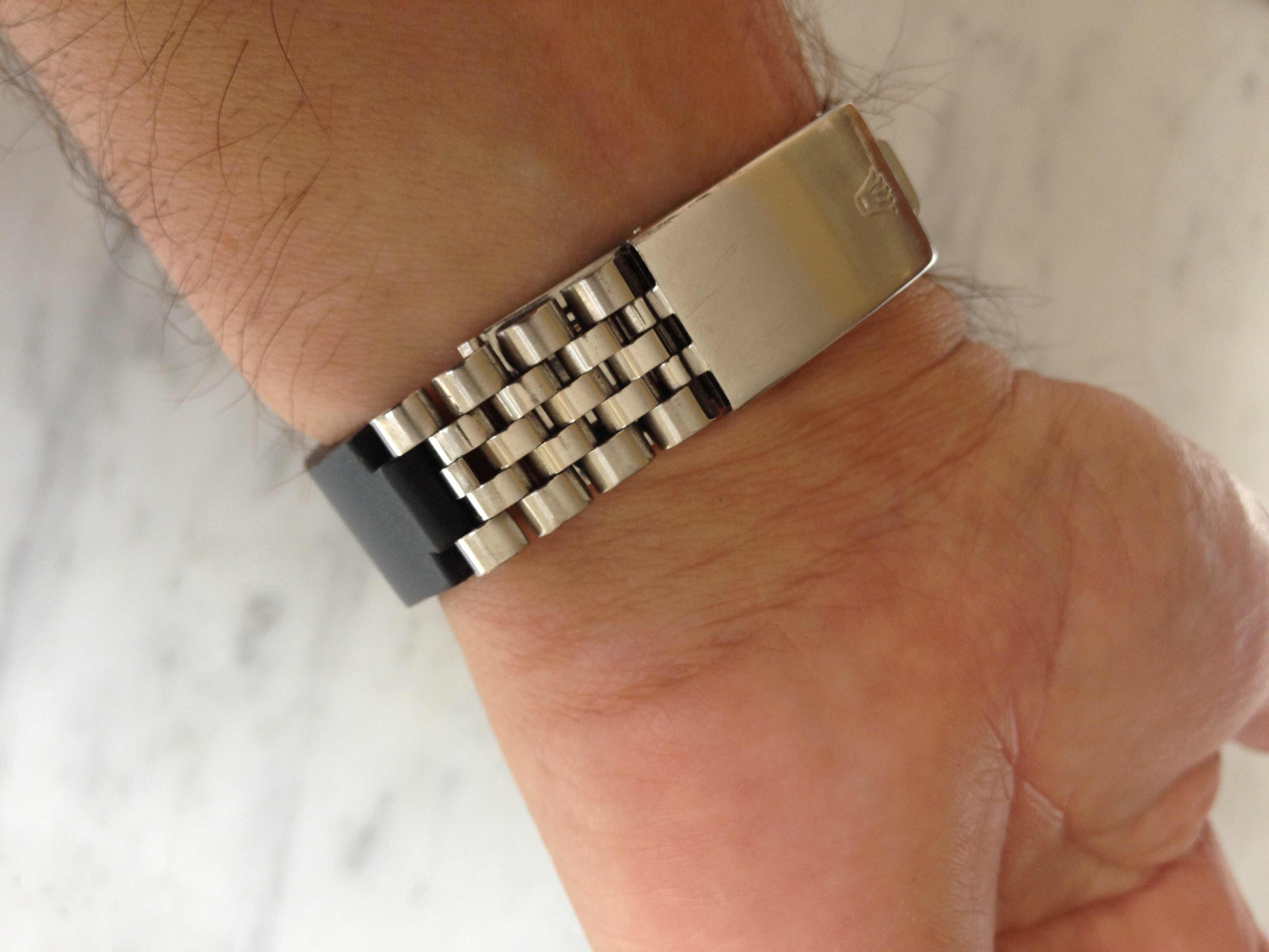 The strap arrived this morning and it looked like it should work. Having now completed the fitting the result looks great – although I think it’s pretty fair to say that while the Everest EH-1S works and looks great it probably isn’t specifically tailored for the Datejust. (In fact I just had a pretty instant response from Michael at Everest who tells me that they are testing some new designs for the DJ and the Jubilee strap – so worth looking out for).